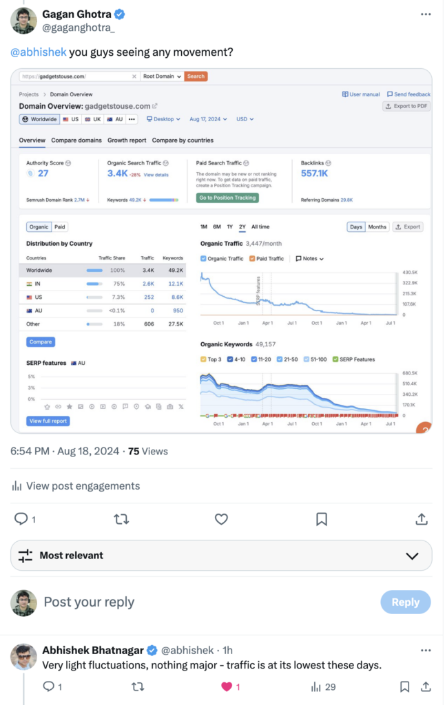 I noticed a long detailed post about HouseFresh which I have mentioned above as well – it was one of the site that was really hit hard by Sep HCU – but now seeing some improvement.