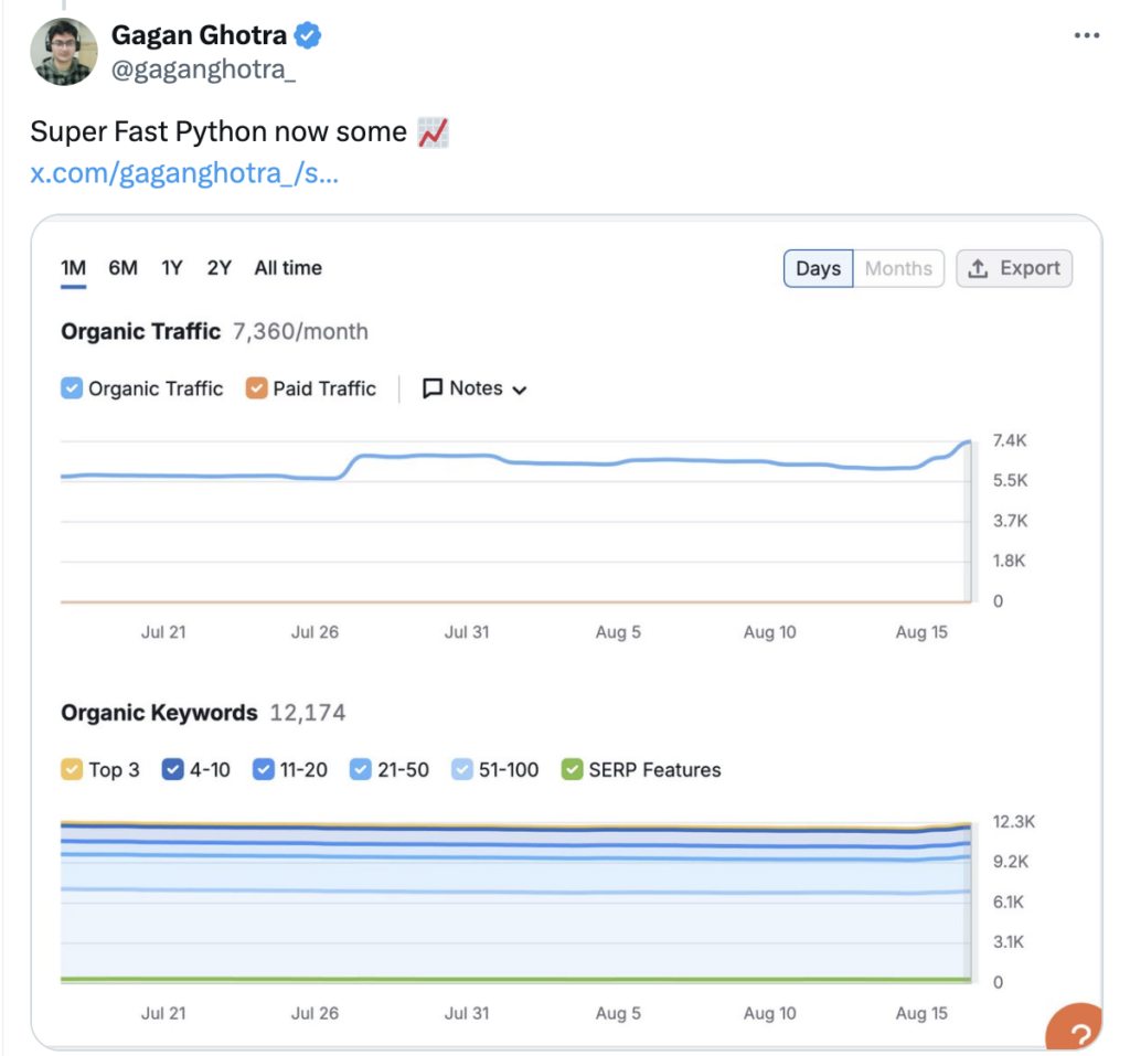 And my friend Deepak who builds sites using Programmatic SEO is also noticing improvements for his programmatic sites.