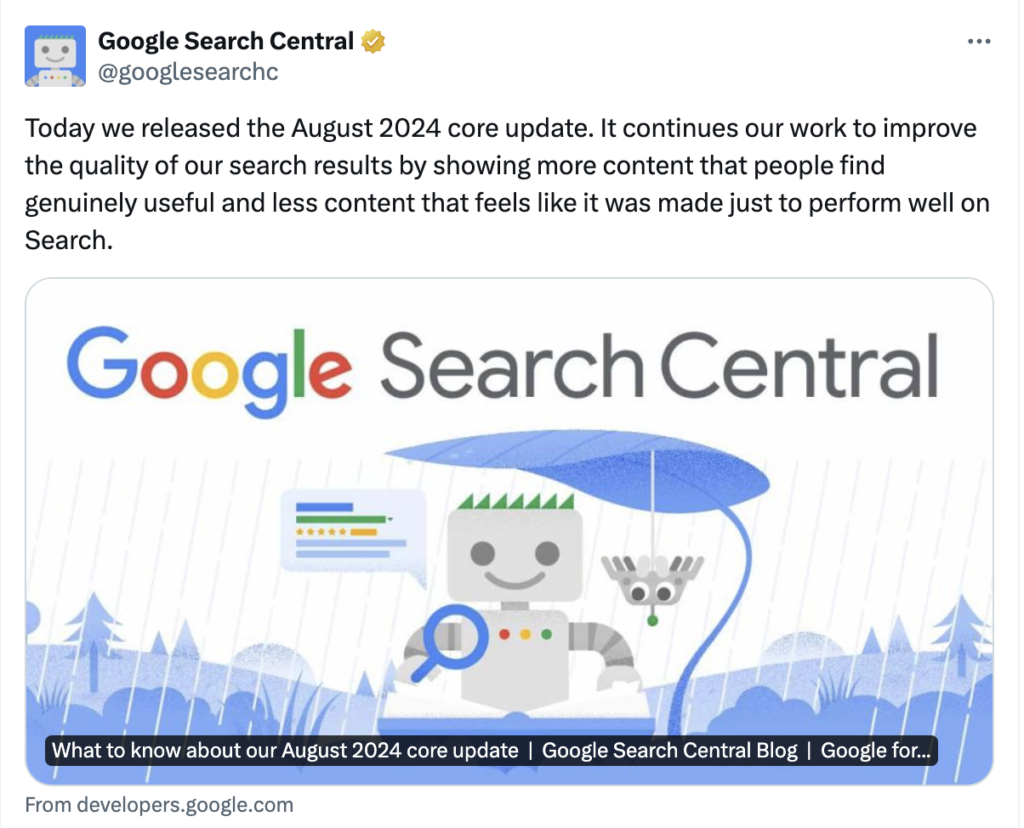 As you know, Google released the August 2024 core update on Thursday and then shortly after confirmed a ranking bug impacting a large number of search results (which is still not fixed as of the time of this story).