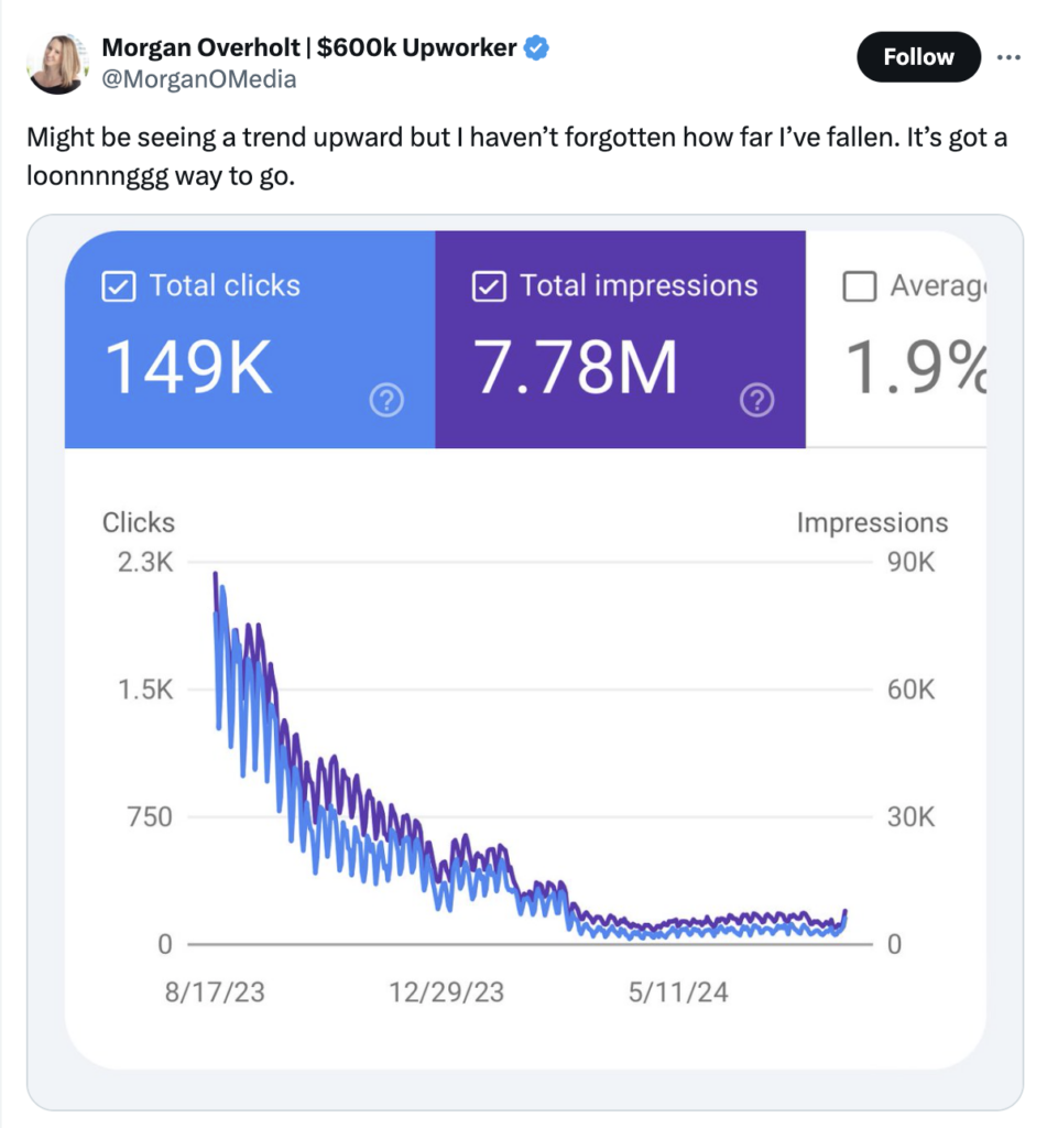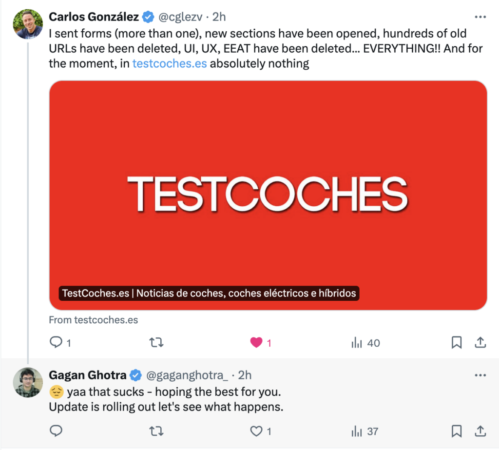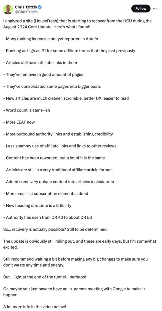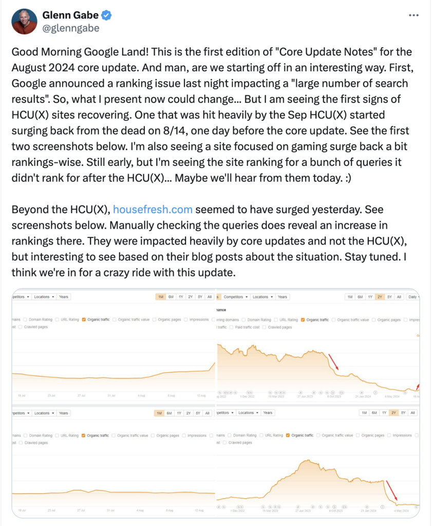 Also Glenn has been reporting about ranking movement of sites affected by September Helpful Content from last year. Which has been super useful for the whole SEO Community to keep a track of if sites affected by HCU were seeing some ranking improvement or no.