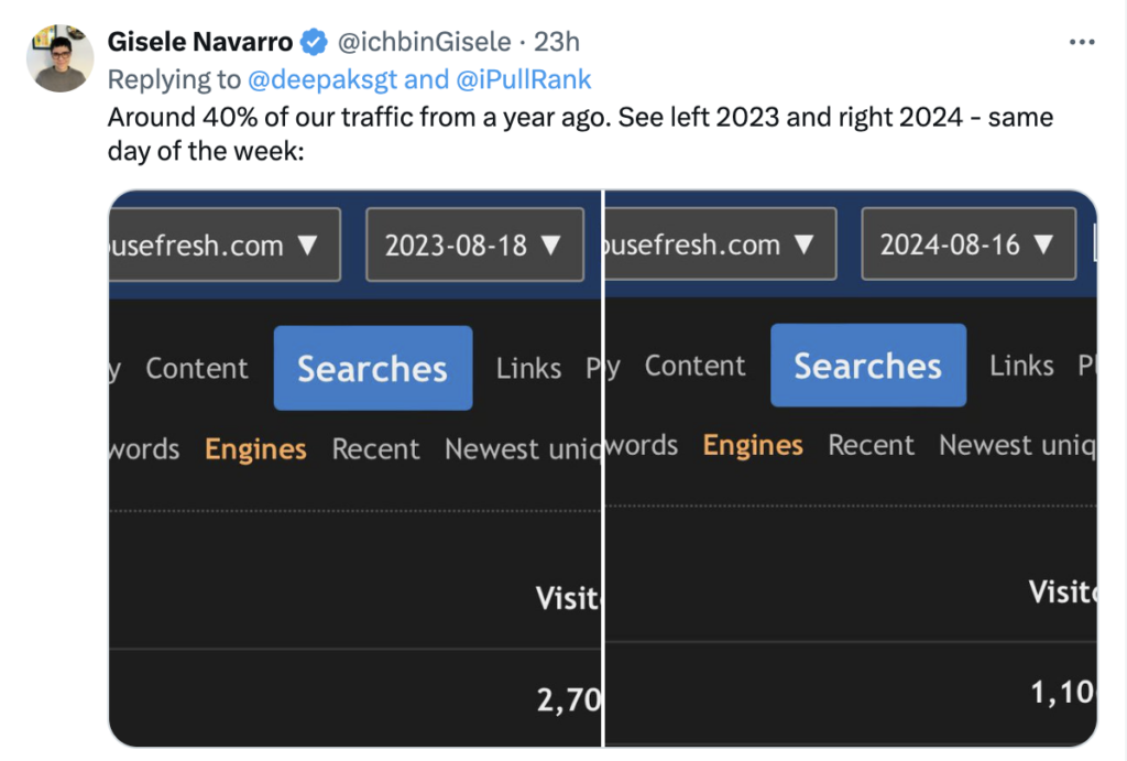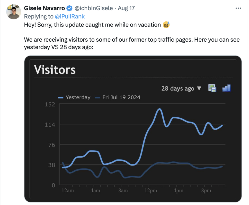 Also Gisele Navaroo from HouseFresh posted these and said that traffic is now coming back after the update. I already briefly mentioned HouseFresh above.