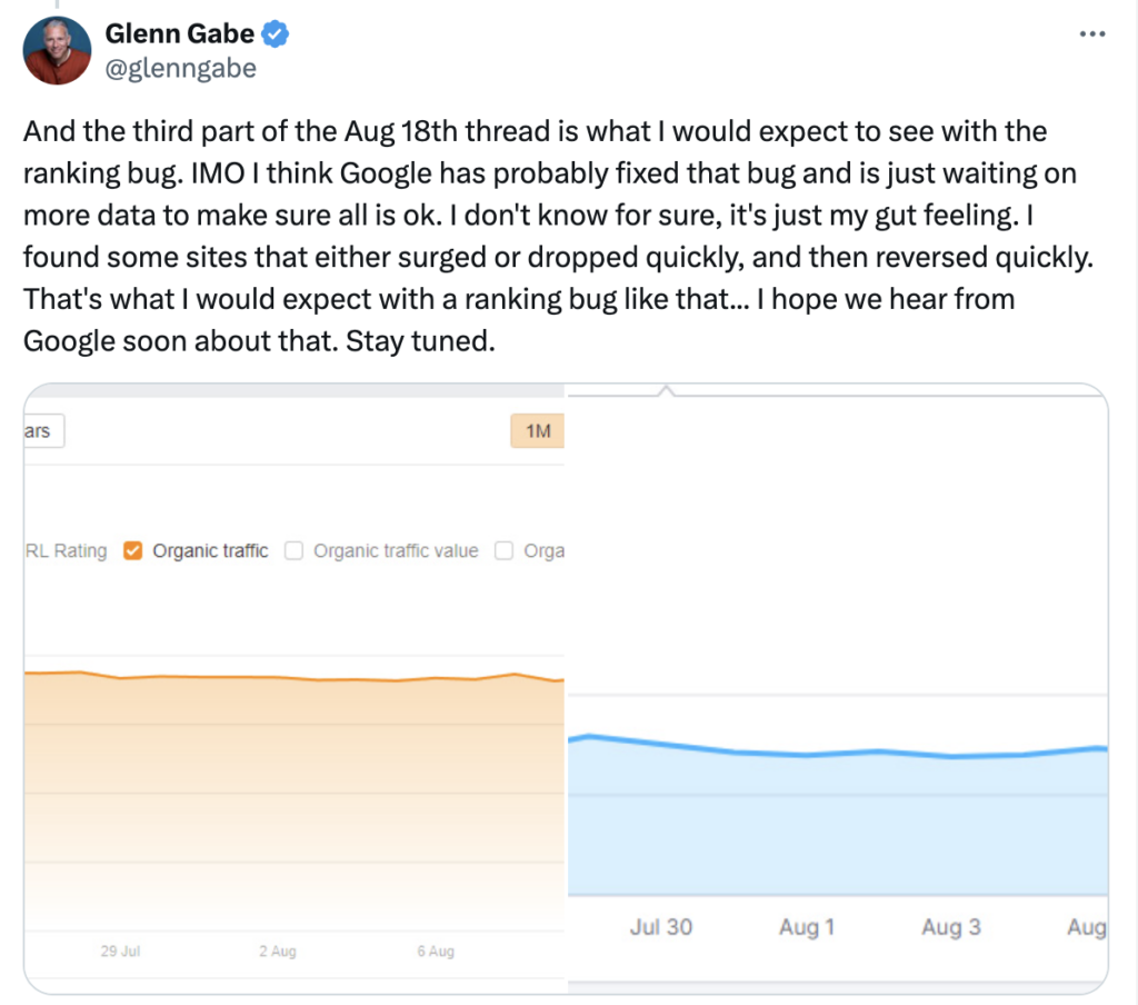 Update from Glenn Gabe where he shared some screenshots of sites which are recovering. You can check these tweets to see the graphs of ranking.