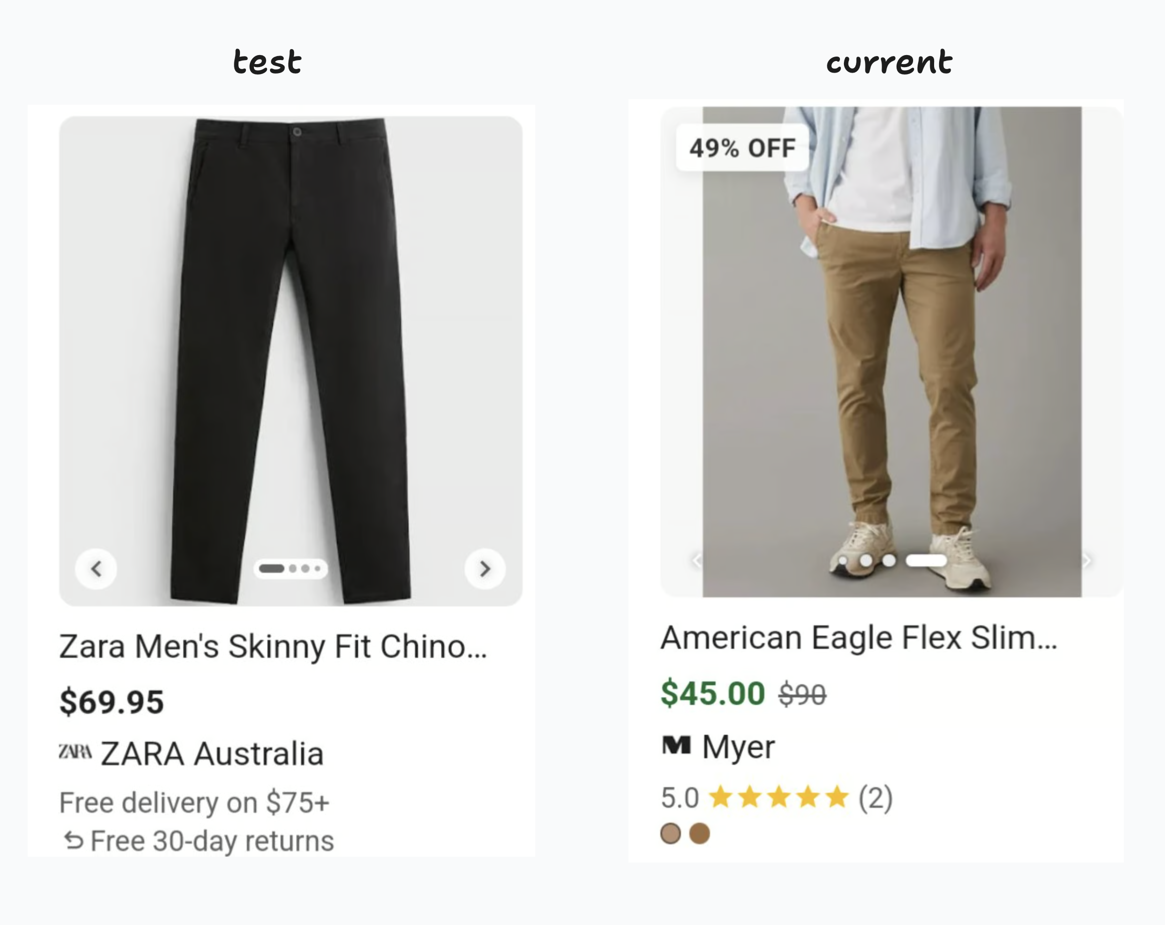 For product cards in the product grids Google is now testing adding background color for arrows and the slider in the middle of image too. Here is a side by side comparison of this and a screen recording of search results displaying this change in search results.