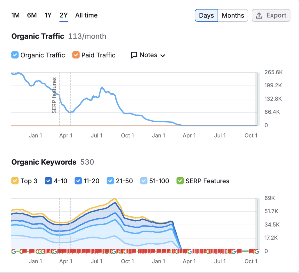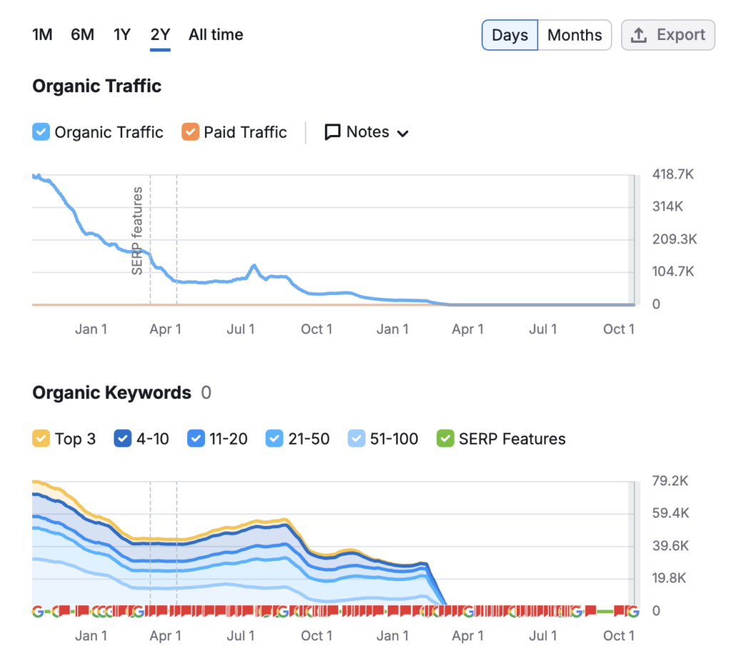 Also see these two sites, after getting funded by VCs they turned on GPTs and published many pages using AI.