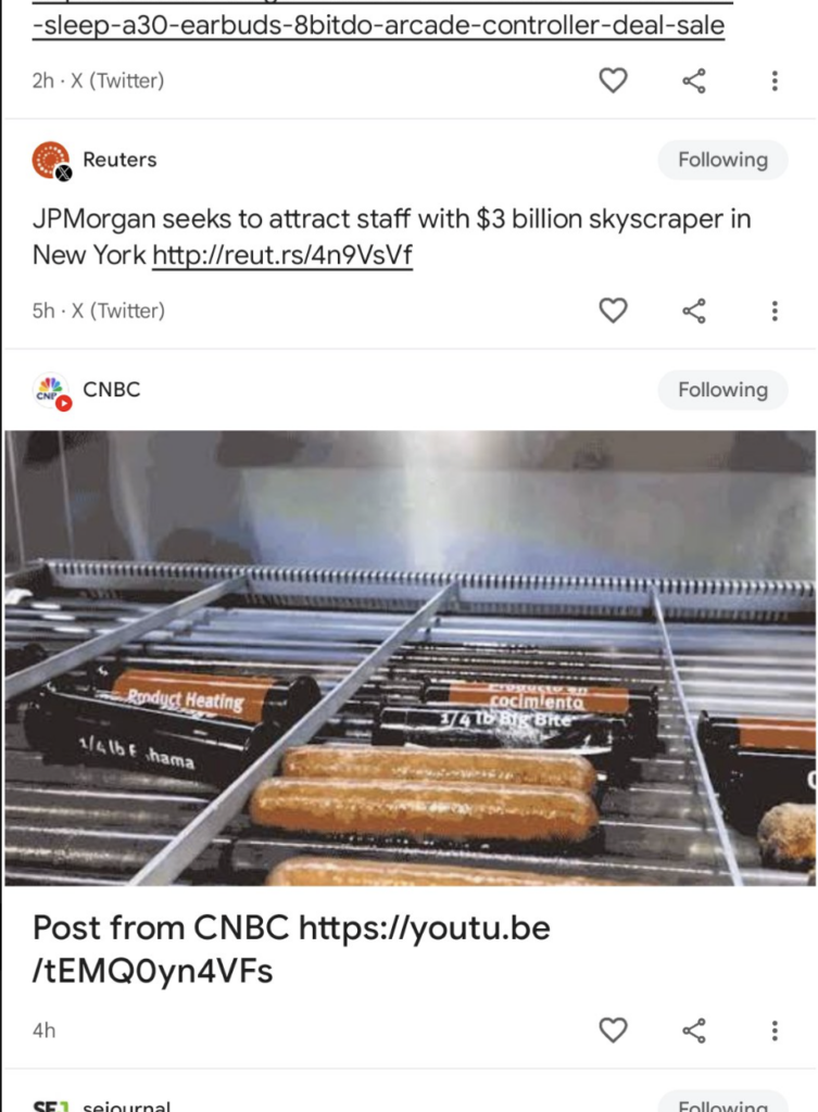 These show up with the title “Post from channel name ……” like “Post from CNBC …..”