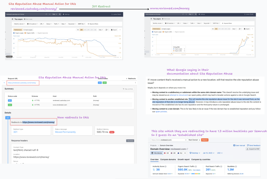 Also I noticed via Danny Ashton that US Today is redirecting their manual action affected sub folder to another domain now.